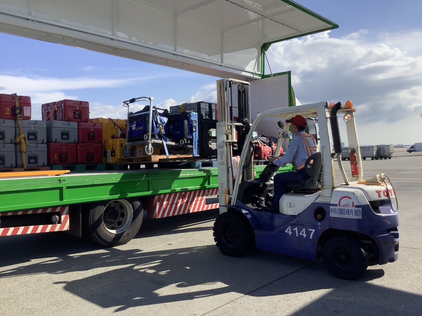 ▲ 圖:消防署國際人道救援專案包機演練桃園站專機卸載作業
